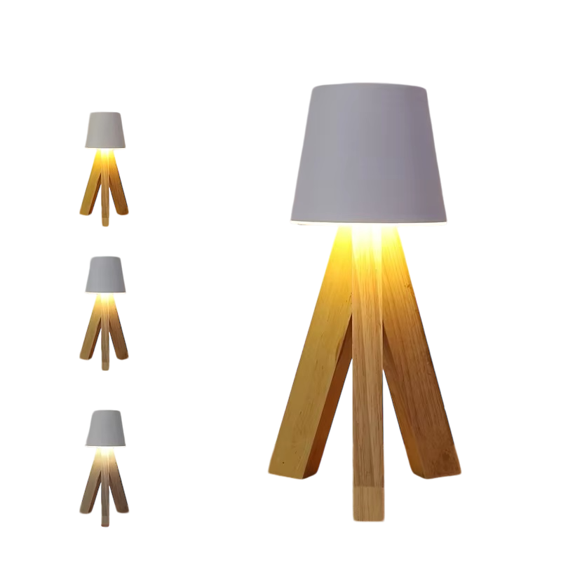 De oplaadbare tafellamp Legna van Lussono straalt een warme, natuurlijke sfeer uit dankzij de stijlvolle combinatie van hout en een klassieke lampenkap. Deze lamp met zijn elegante driepootontwerpgeeft een speelse en tijdloze uitstraling die perfect past in elke interieurstijl.